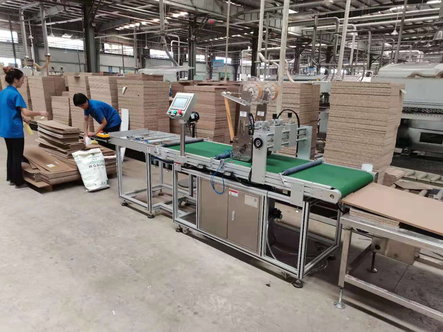 木片自動拼合貼膠帶機客戶現場案例