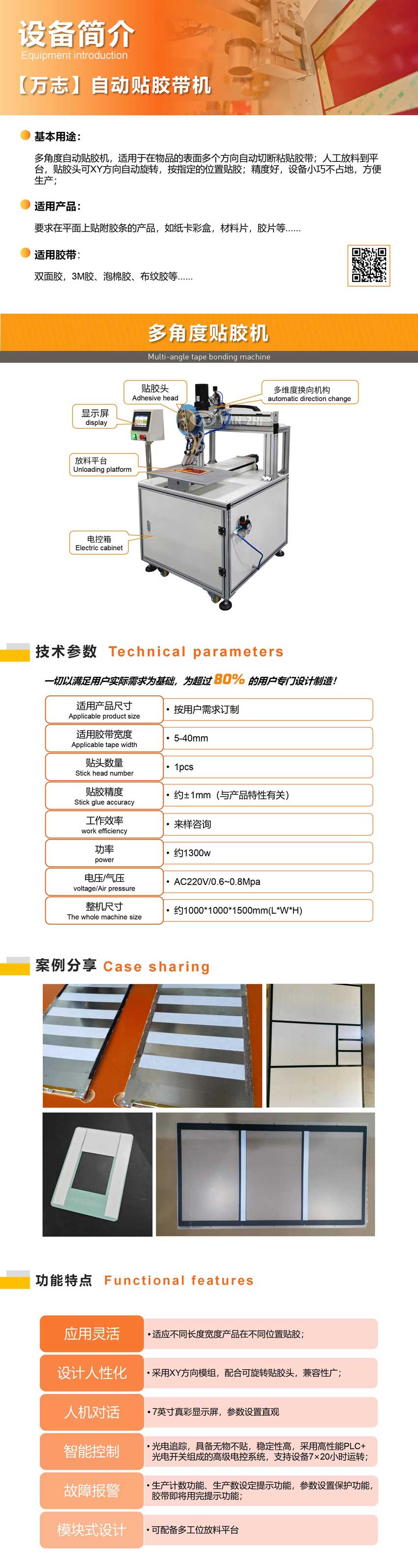 自動貼膠機,適用于在物品的表面多個方向自動切斷粘貼膠帶;人工放料到平臺,貼膠頭可XY方向自動旋轉(zhuǎn),按指定的位置貼膠;精度好,設備小巧不占地,方便生產(chǎn);