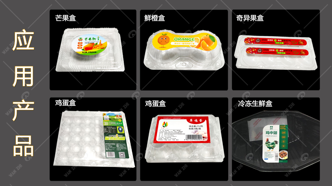 WZ-125全自動吸塑盒平面貼標機,適用于產品的上平面貼標,如雞蛋盒、草莓盒、水果盒、餐盒等產品表面貼標,兼容性廣,機械手自動取盒送到輸送上進行貼標后自動收集產品;可單機使用,也可與前端注塑機連接使用。