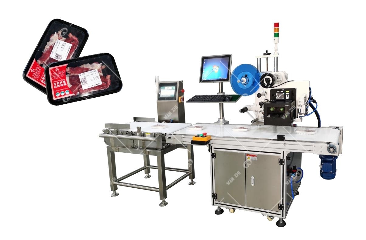 適應于不同高度(厚度)的包裝盒/袋自動稱重貼標, 前端可連接包裝機、包膜機,稱重后信息即時傳輸到打印系統生成內容后在對應的產品或包裝上實時貼標,采用先進無接觸吹貼式貼標,一分鐘最高可貼50Psc,打印模板可編輯,方便生產管理信息溯源,實現流水線無人化作業。