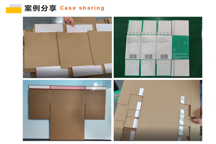 本機型主要用于各類紙箱、紙卡等印刷品表面自動切斷、粘貼雙面膠帶或透明膠帶。配置2個貼膠頭,實現輸送方向同時貼2條膠帶,貼合長度可任意設定; 貼膠頭可根據用戶需求選配;