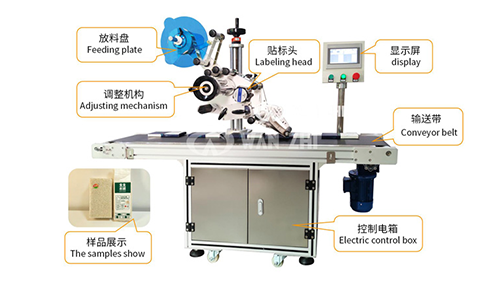 針對藥品包裝盒貼標研發,采用平面貼標的方式,配置氣缸攔停貼標,增加穩定性,提高貼標效率,加配分瓶機構可節省更多人工、提高貼標效率。可選配打碼機或噴碼機到貼標頭,可實現在標簽上打印生產日期、批號和噴印條碼等信息。