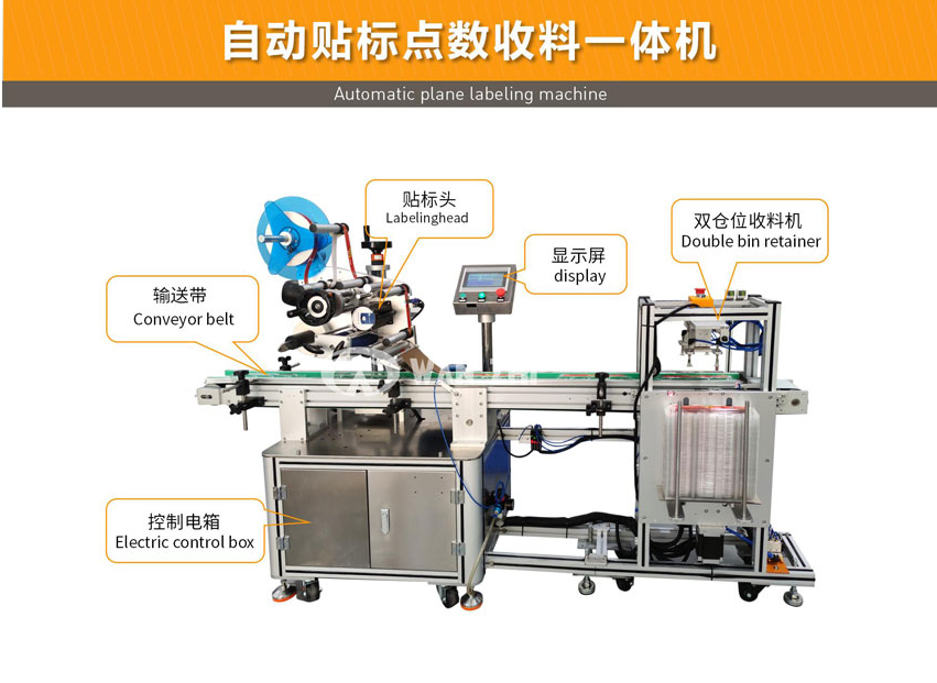 適用于在各種吸塑包裝盒上平面貼標簽或不干膠膜,如PP透明水果盒貼標,配套自動點數收料功能,一次性收料200件,操作人性化,方便生產管理。