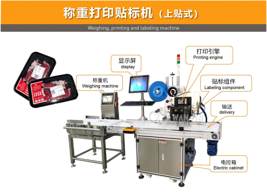適用于產品表面在線稱重實時打印貼標,采用先進無接觸吹貼式貼標,適應于不同高度(厚度)的包裝盒/袋自動貼標。打印系統對接數據庫,對流水線上的產品進行貼標;前端可連接包裝機、包膜機,實現流水線無人化作業。