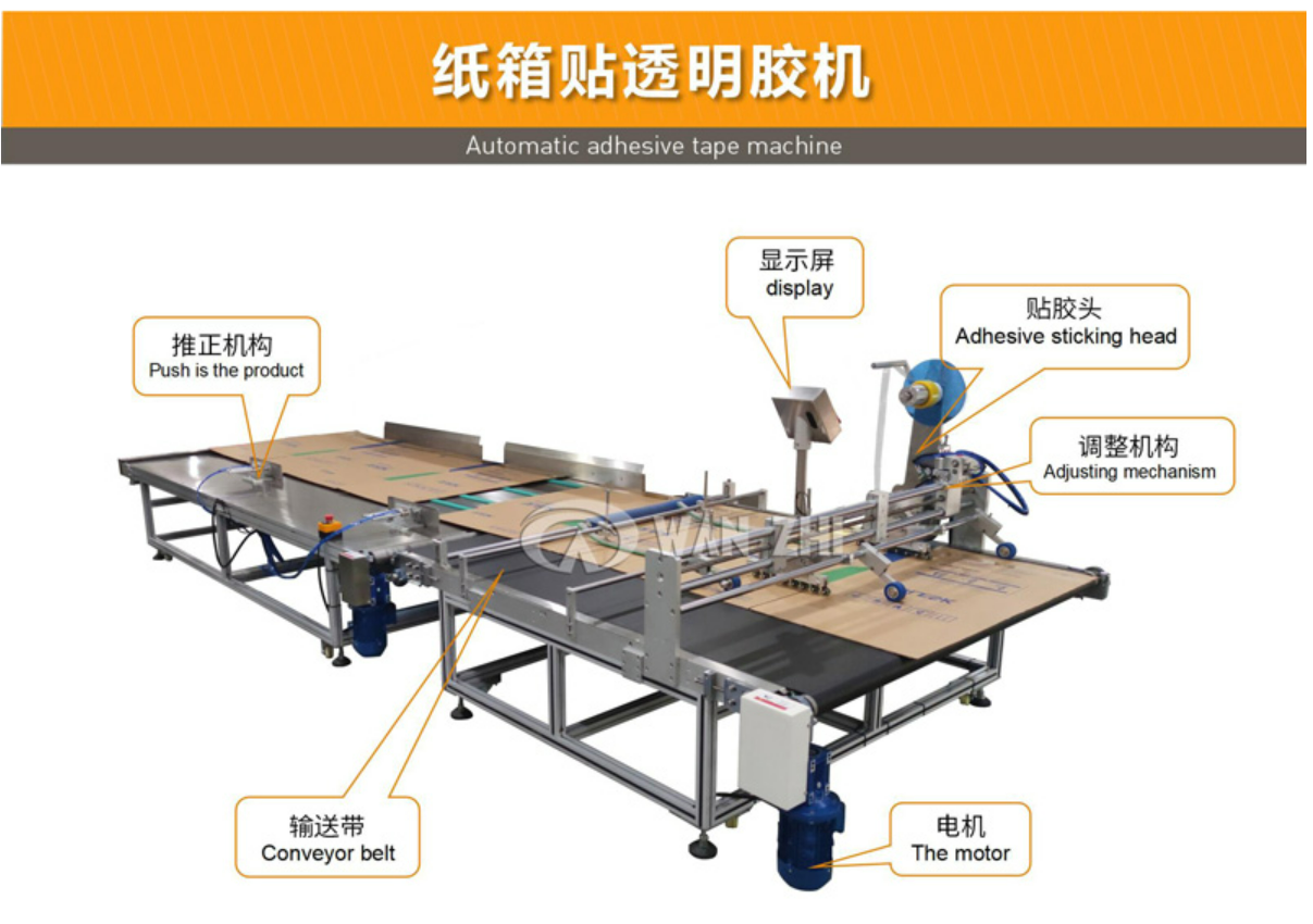 高效自動化,提升產能:萬志自動化紙箱自動貼透明膠機通過自動化設計,實現了紙箱的快速分料、輸送與精準貼膠,大幅提升了生產效率。人工只需簡單放置紙箱,機器即可自動完成后續操作,真正做到了省時省力。